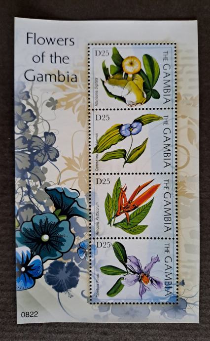 Prodajam dvojnike in ostale viške iz svoje zbirke. Gambija blok - flora, cvetje, rože, blok.