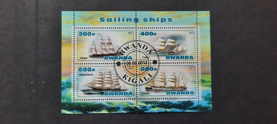 jadrnice, ladje (I) - Ruanda 2013 - blok 4 znamk, žigosan (Rafl01)
