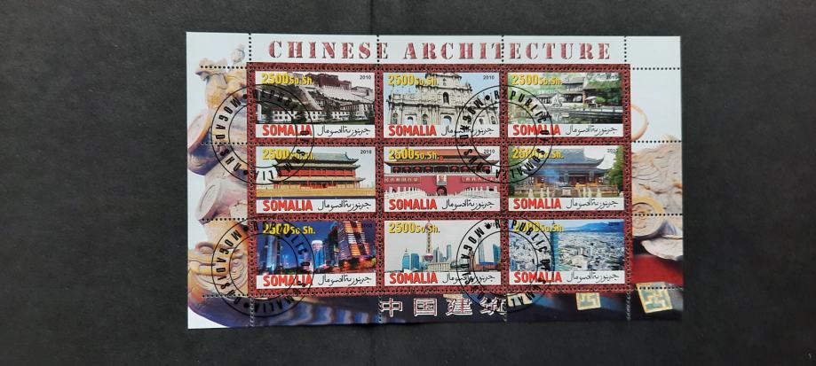 Kitajska arhitektura - Somalia 2010 - blok 9 znamk, žigosan (Rafl01)
