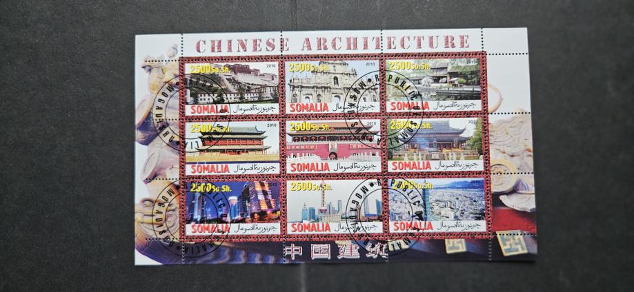 Kitajska arhitektura - Somalia 2010 - blok 9 znamk, žigosan (Rafl01)