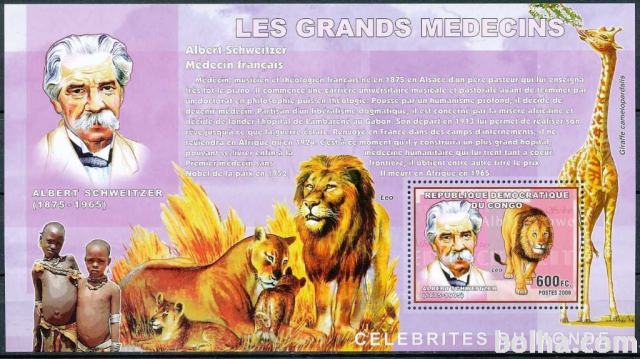 KONGO KINSHASA 2006 ALBERT SCHWEITZER ŽIVALI LEV ŽIRAFA ** blok (70)
