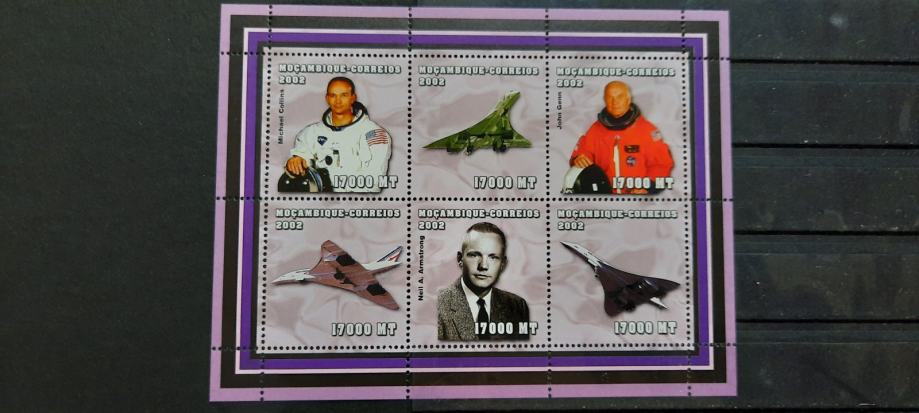 letala & astronavti - Mozambik 2002 -Mi 2489/2494 -blok, čist (Rafl01)