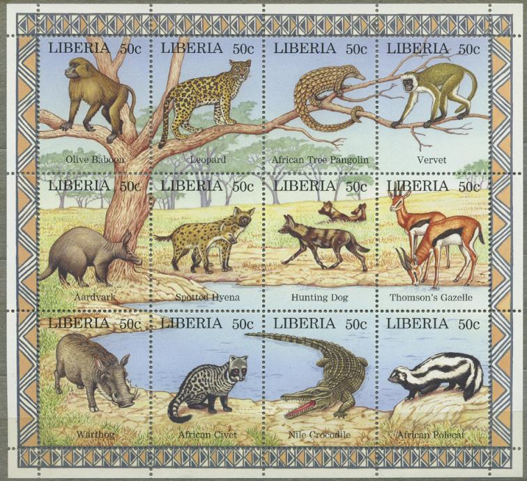 LIBERIJA 1997 AFRIŠKE ŽIVALI FAVNA ** Mi 1807/1818 ** mala pola (30)
