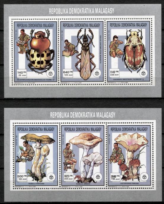 MADAGASKAR 1991 SKAVTI ŽUŽELKE GOBE * Mi 1309/1315 * 2x mala pola (74)