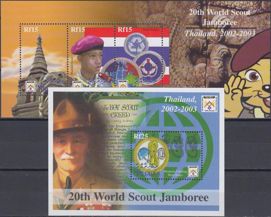 MALDIVI 2002 SKAVTI JAMBOREE ** Mi 3976/3978+B522 ** MP+blok (74)
