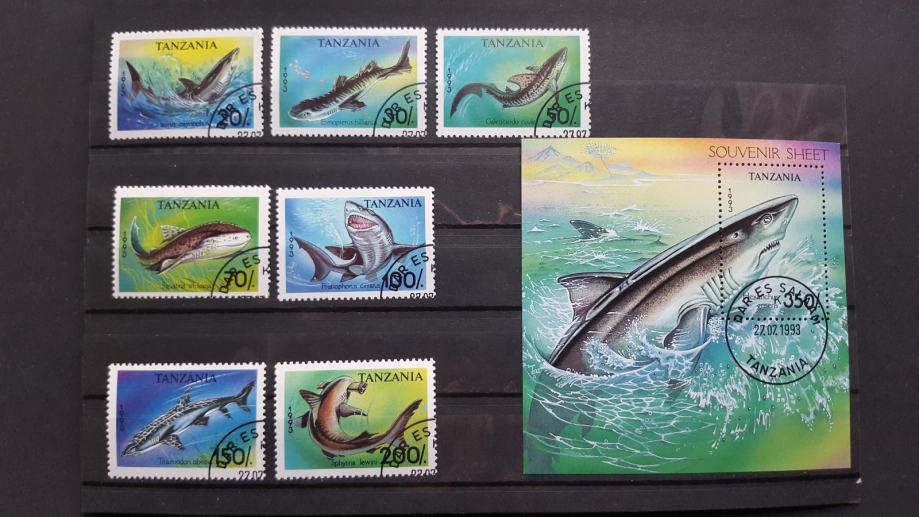 morski psi -Tanzanija 1993-Mi 1583/1589 in B 225-serija, blok (Rafl01)