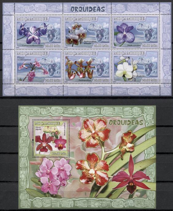 MOZAMBIK 2007 AFRIŠKE ORHIDEJE FLORA ** Mi 2912/17+B212 * MP+blok (36)