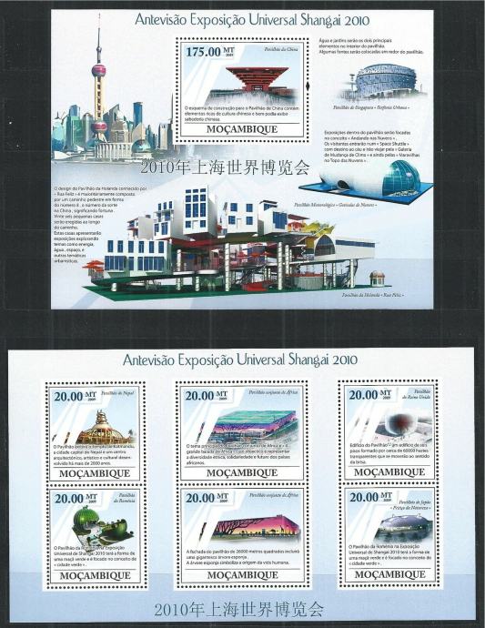 MOZAMBIK 2009 EXPO SHANGHAI ZGRADBE ** Mi 3364/69+B274 ** MP+blok (18)