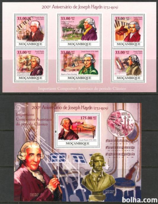 MOZAMBIK 2009 SKLADATELJ JOSEPH HAYDN ** Mi 3392/97+B278 * MP+blok (7)