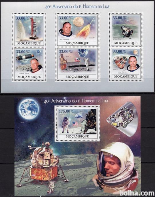MOZAMBIK 2009 VESOLJE LUNA APOLLO ALDRIN ** Mi 3455/60+B287 ** MP+BLK