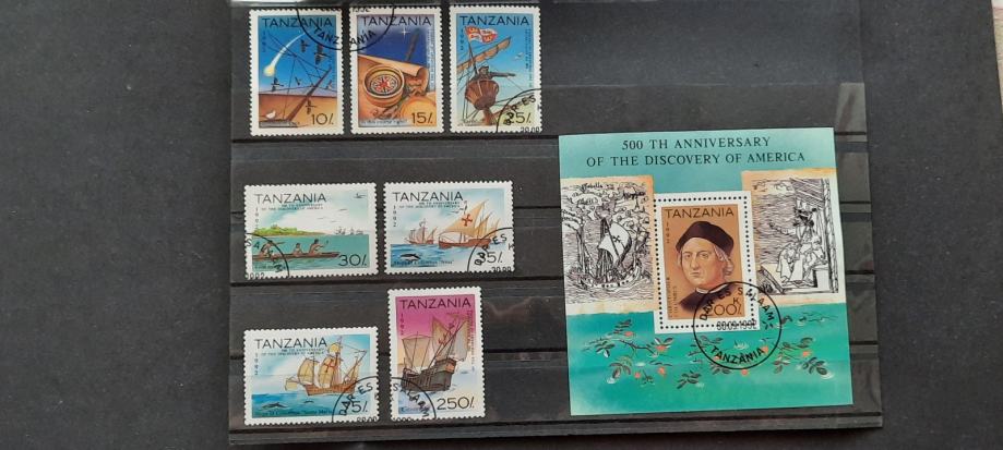 odkritje Amerike -Tanzanija 1992 -Mi 1298/1304 in B 189 -žig. (Rafl01)