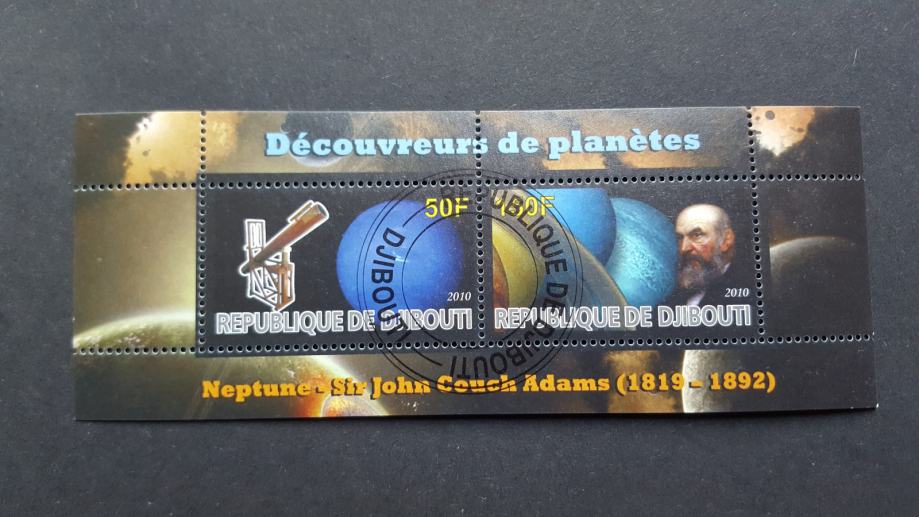 odkrivanje planetov - Djibouti 2010 - blok 2 znamk, žigosan (Rafl01)