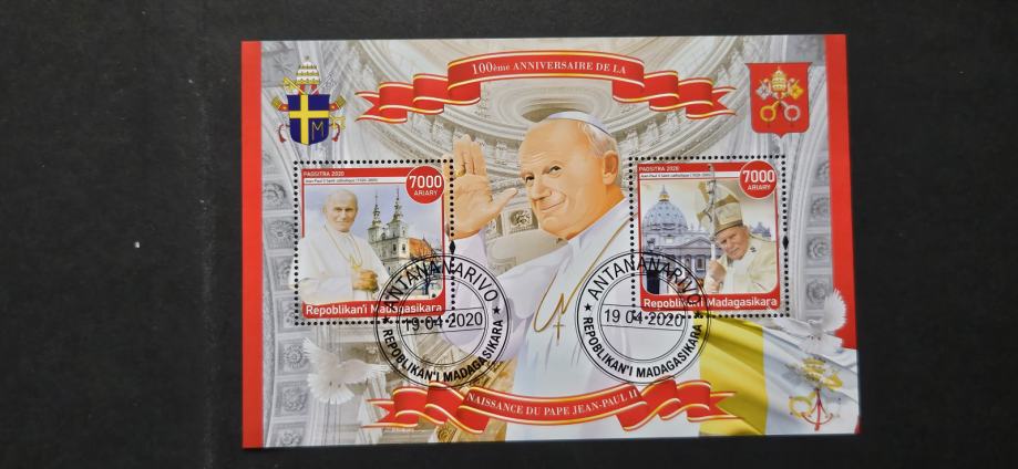 papež Janez Pavel II - Madagaskar 2020 -blok 2 znamk, žigosan (Rafl01)
