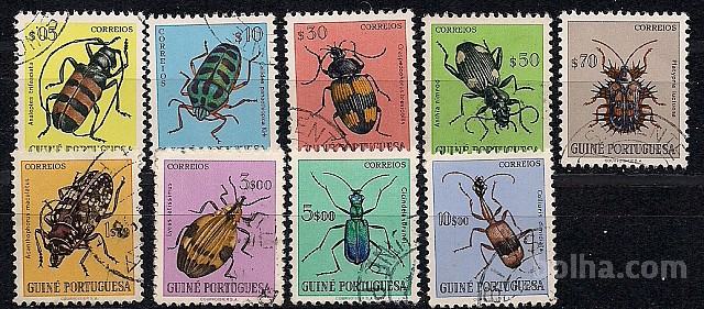Prodajam dvojnike in ostale viške iz svoje zbirke. Portugalska kolonija Gvineja, celotna žigosana serija žuželke, insekti, številka po katalogu Michel: 281-290.