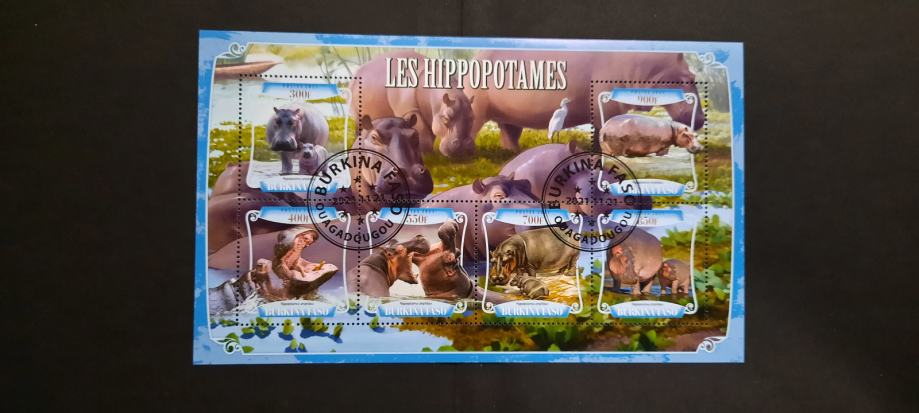 povodni konji - Burkina Faso 2021 - blok 6 znamk, žigosan (Rafl01)