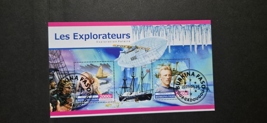 raziskovalci - Burkina Faso 2023 - blok 2 znamk, žigosan (Rafl01)