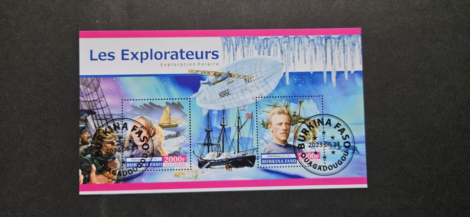 raziskovalci - Burkina Faso 2023 - blok 2 znamk, žigosan (Rafl01)