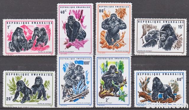 RUANDA 1970 AFRIŠKE ŽIVALI PRIMATI GORILE ** Mi 400/407 ** serija (71)