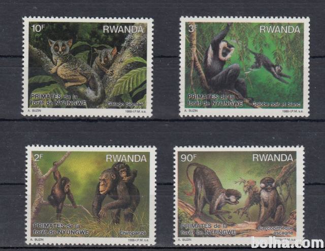 RUANDA 1988 AFRIŠKE ŽIVALI PRIMATI OPICE ** Mi 1389/1392 * serija (71)