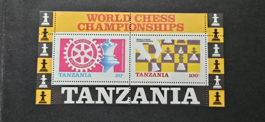 Tema: svetovno prvenstvo v šahu, emblemi, šahovske figure, Rotary konferenca.