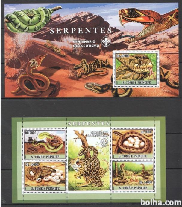 SAN TOME 2007 PLAZILCI KAČE SKAVTI ** Mi 3024/27+B594 ** MP+blok (92)