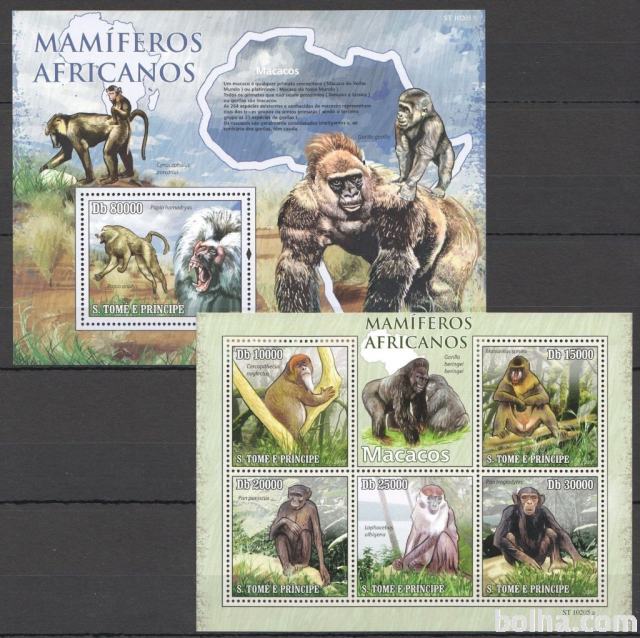 SAN TOME 2010 ŽIVALI OPICE PRIMATI * Mi 4459/63+B768 * MP+blok (71)