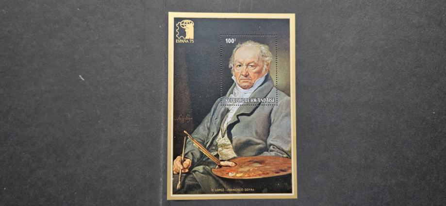 Tema: umetnost, slikarstvo, filatelistične razstave, emblemi, slikarji, slike, portret slikarja Francisca De Goya - naslikal slikar Vicente Lopez.