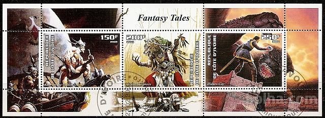 Prodajam dvojnike in ostale viške iz svoje zbirke. SLONOKOŠČENA OBALA, BLOK 2003 - FANTAZIJSKE ZGODBE