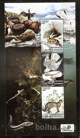 Prodajam dvojnike in ostale viške iz svoje zbirke. SLONOKOŠČENA OBALA, BLOK 2003 - KAČE, PTICE, RIBE, FAVNA, ŽIVALI.