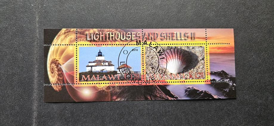 svetilniki & školjke (II) -Malawi 2010 -blok 2 znamk, žigosan (Rafl01)