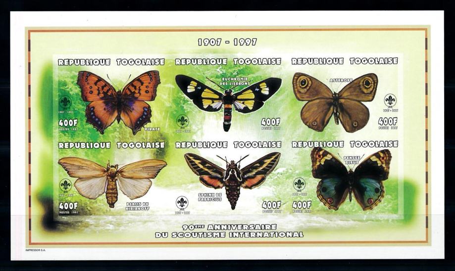 TOGO 1997 METULJI ŽUŽELKE SKAVTI ** Mi 2666/2671 ** MP nezobčana (25)