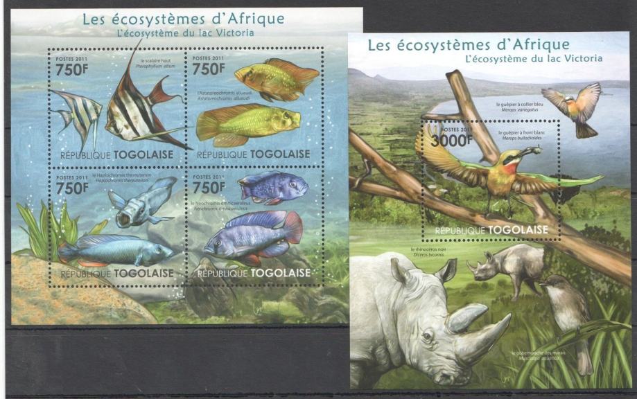 TOGO 2011 ŽIVALI RIBE NOSOROG PTICE ** Mi 4177/80+B646 ** MP+blok (30)