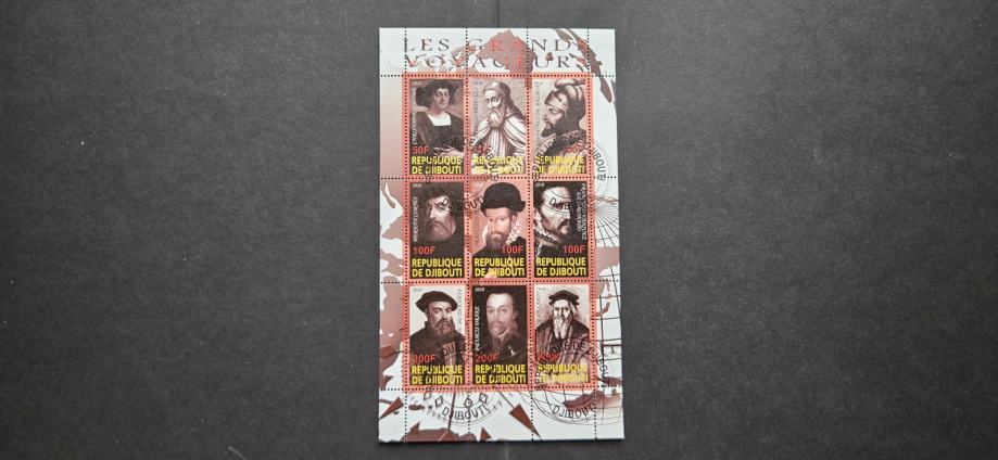 veliki popotniki (III) - Djibouti 2010 -blok 9 znamk, žigosan (Rafl01)