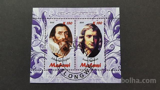 veliki znanstveniki (V) -Malawi 2011 - blok 2 znamk, žigosan (Rafl01)