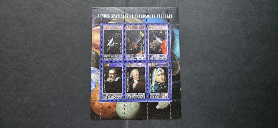 vesolje, astronomi (III)- Djibouti 2010-blok 6 znamk, žigosan (Rafl01)