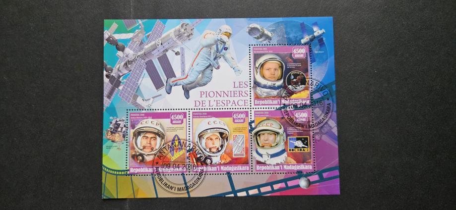 vesoljski pionirji - Madagaskar 2016 - blok 4 znamk, žigosan (Rafl01)
