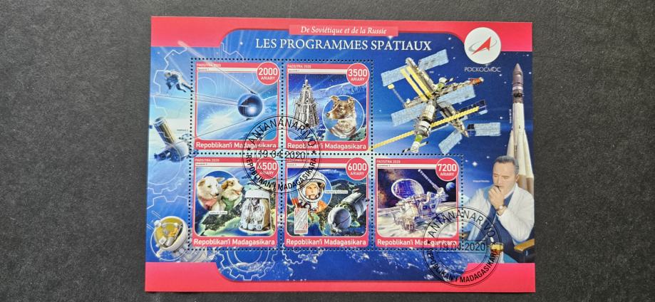 vesoljski programi II -Madagaskar 2020 -blok 5 znamk, žigosan (Rafl01)