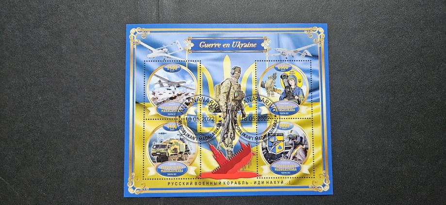 vojna v Ukrajini - Madagaskar 2022 - blok 4 znamk, žigosan (Rafl01)