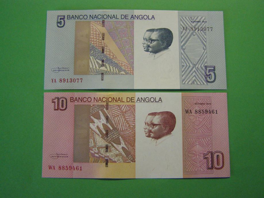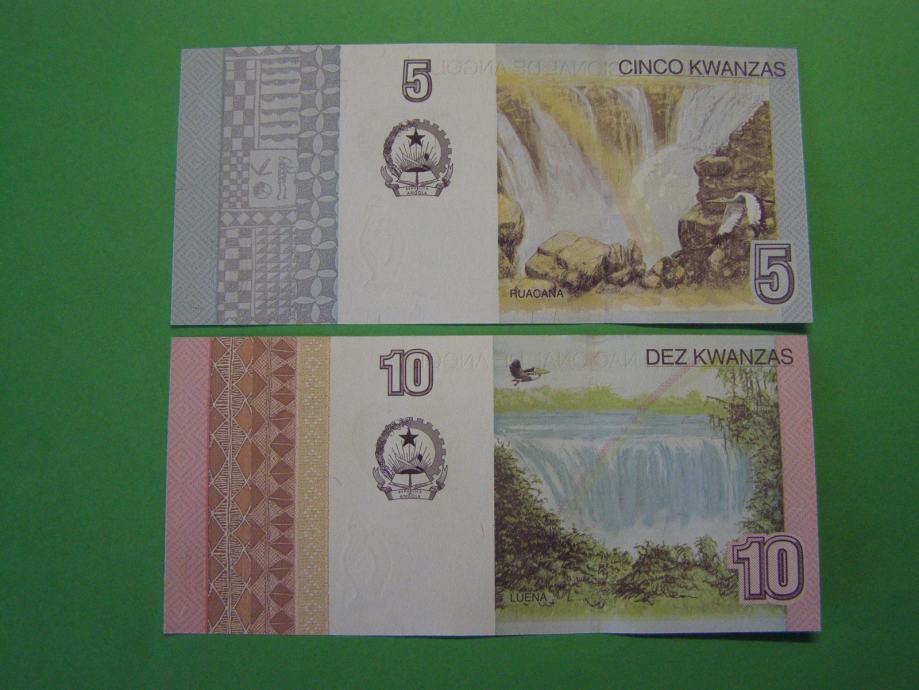 Prodam bankovca za 5 in 10 Kwanzas iz Angole (5, 10 AOA), kot ju lahko vidite na fotografijah in sta povsem nova - UNC kvalitete.