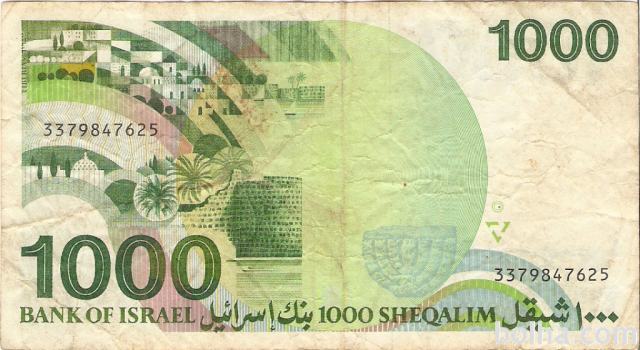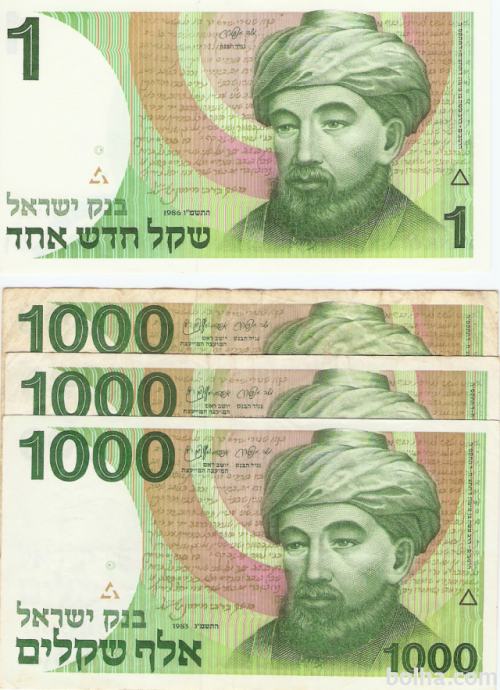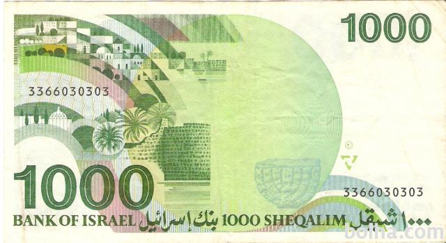 Prodam REDKE BANKOVCE 1 NEW SHEQALIM P51Aa-1986 UNC CENA € 6,90 TER 1.000 SHEQALIM ŠE P49b-1983 F/VF CENA € 4,90,, VF CENA € 5,90 (IZRAEL) kvaliteta.