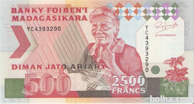 PRODAM BANKOVEC 500 ARIARY-2500 FRANCS P72a-1993 (MADAGASKAR) UNC - Kvaliteta.