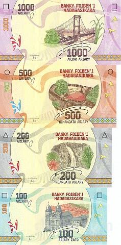PRODAM BANKOVCE 100 ARIARY P97a CENA € 1,50,, 200 ARIARY P98a CENA € 1,90,, 500 ARIARY P99a CENA € 2,50 IN 1000 ARIARY P100a CENA € 2,90 (MADAGASKAR) 2017, UNC - Kvaliteta.