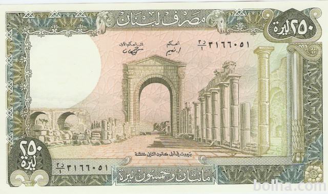 Prodam bankovec 250 LIVERS-P67e.3 (LIBANON) 1988. UNC kvaliteta.