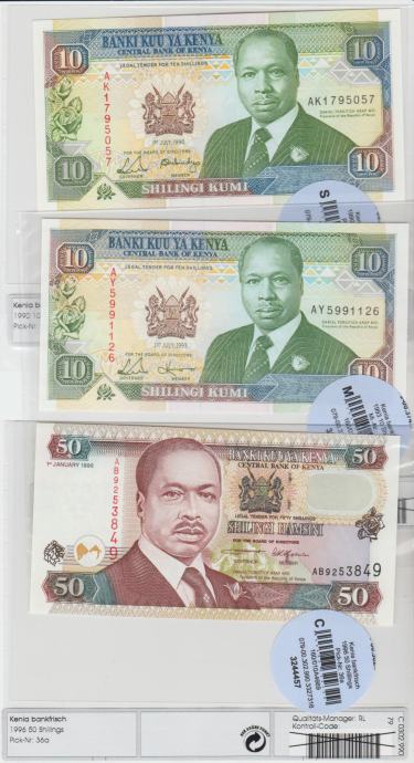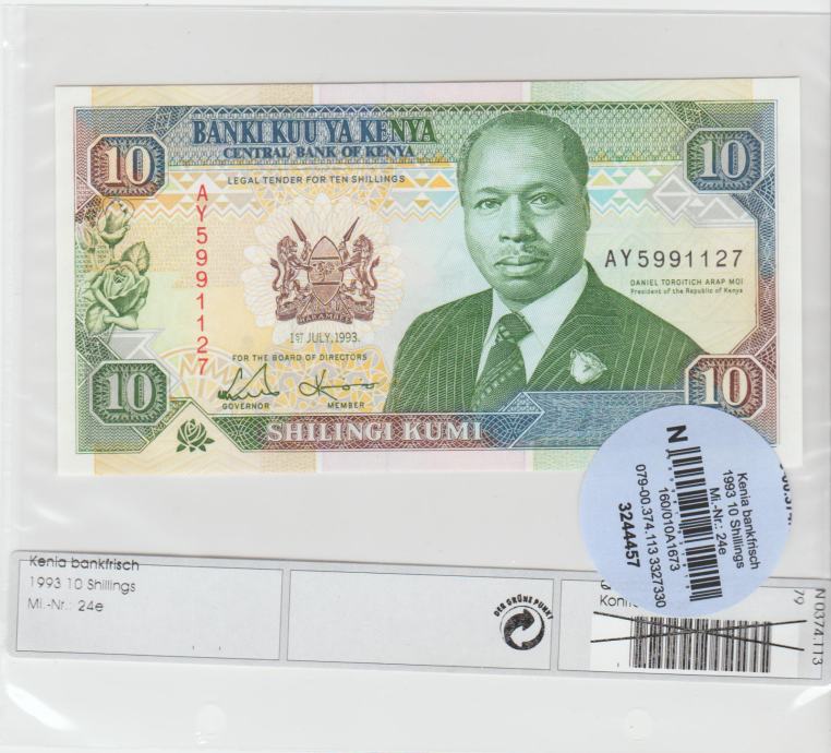 Prodam bankovec ŠE 10 SHILINGI-1990 P24b CENA € 5,90,, 10 SHILINGI-1993 P24e CENA € 5,90 (KENIJA) UNC. BANKOVCI SO V ZAŠČITNIH PLAŠČKIH.