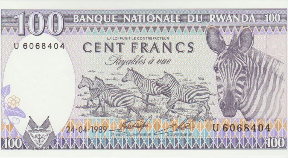 Prodam bankovec 100 FRANCS P19 ( RUANDA RWANDA) 1989.UNC kvalitete