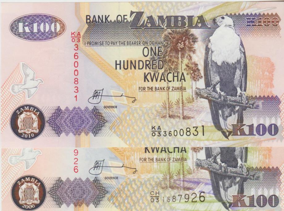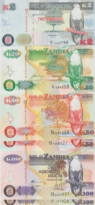 BANKOVEC 2-2012,20-1992,50-2007,08,09,100-2006,09,10 KWACHA(ZAMBIJA)UN