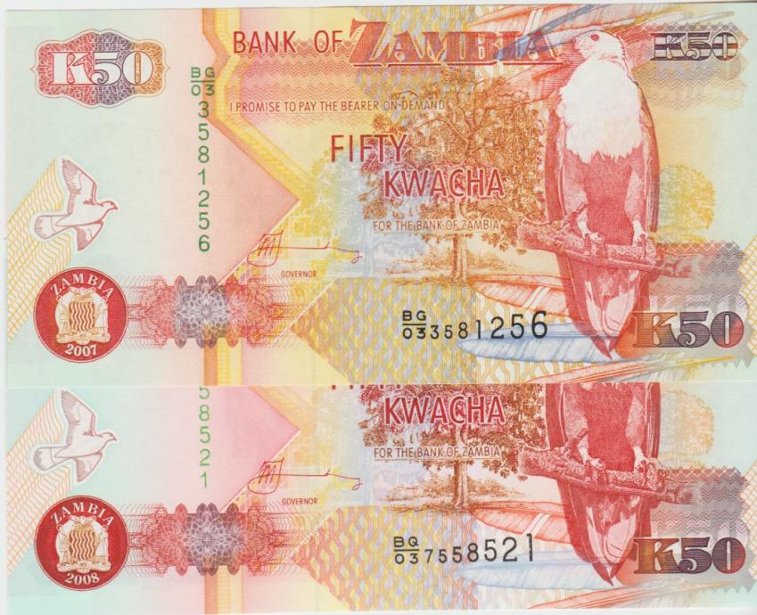 Prodam BANKOVEC 2 KWACHA P49a-2012 CENA € 1,90,, 20 KWACHA P36b-1992 CENA € 1,90,, 50 KWACHA P37f-2007,,P37g-2008 IN P37h-2009 CENA € 1,90 TER 100 KWACHA P38f-2006,P38f-2009 IN P38i-2010 CENA € 1,90 (zambia ZAMBIJA) UNC kvalitete. CENA JE ZA 1 BANKOVEC.