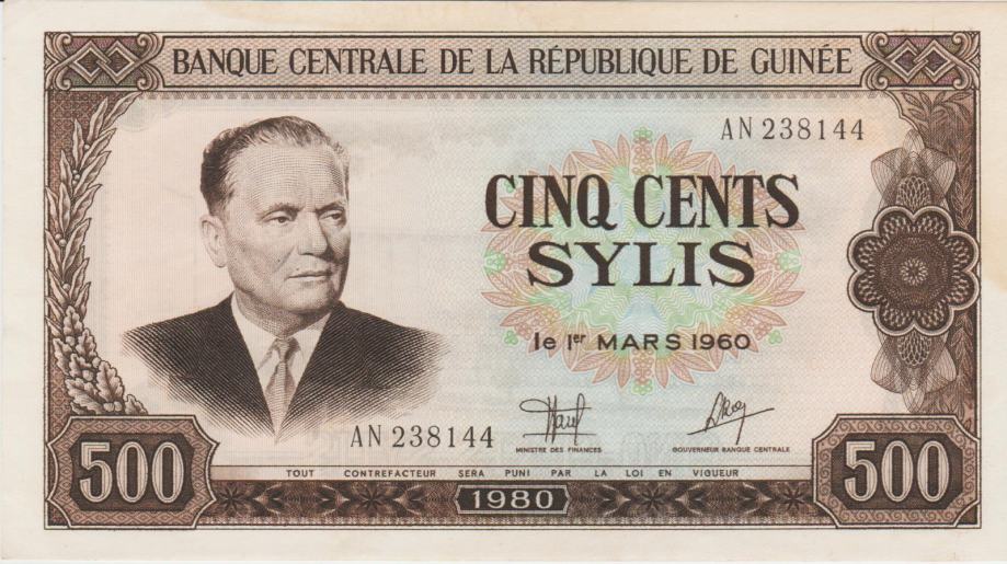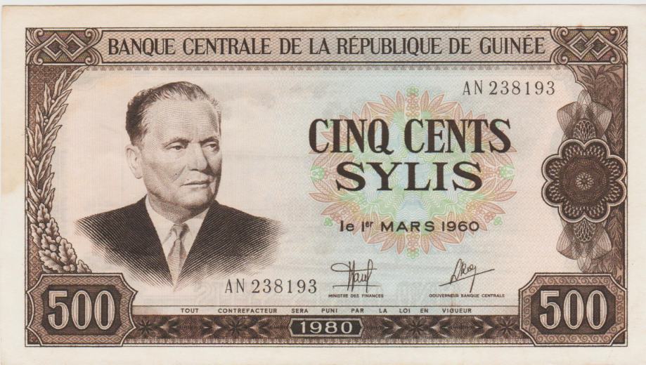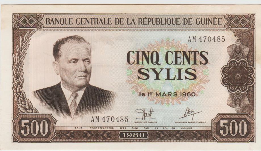 Prodam bankovec 500 SYLIS P27a "TITO-1980" (GVINEJA) 1980,aUNC kvaliteta- CENA JE ZA 1 BANKOVEC.
