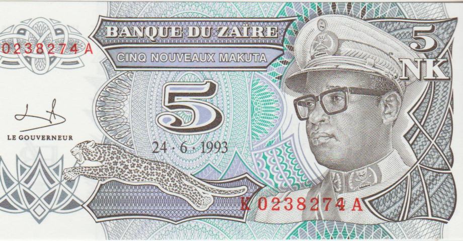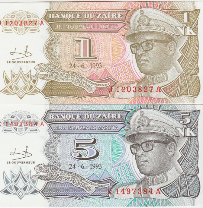 Prodam bankovec 1 NOUVEAUX MAKUTA P47a IN 5 NOUVEAUX MAKUTA P48a (ZAIRE ZAIR) 1993.UNC kvaliteta. CENA JE ZA 1 BANKOVEC.