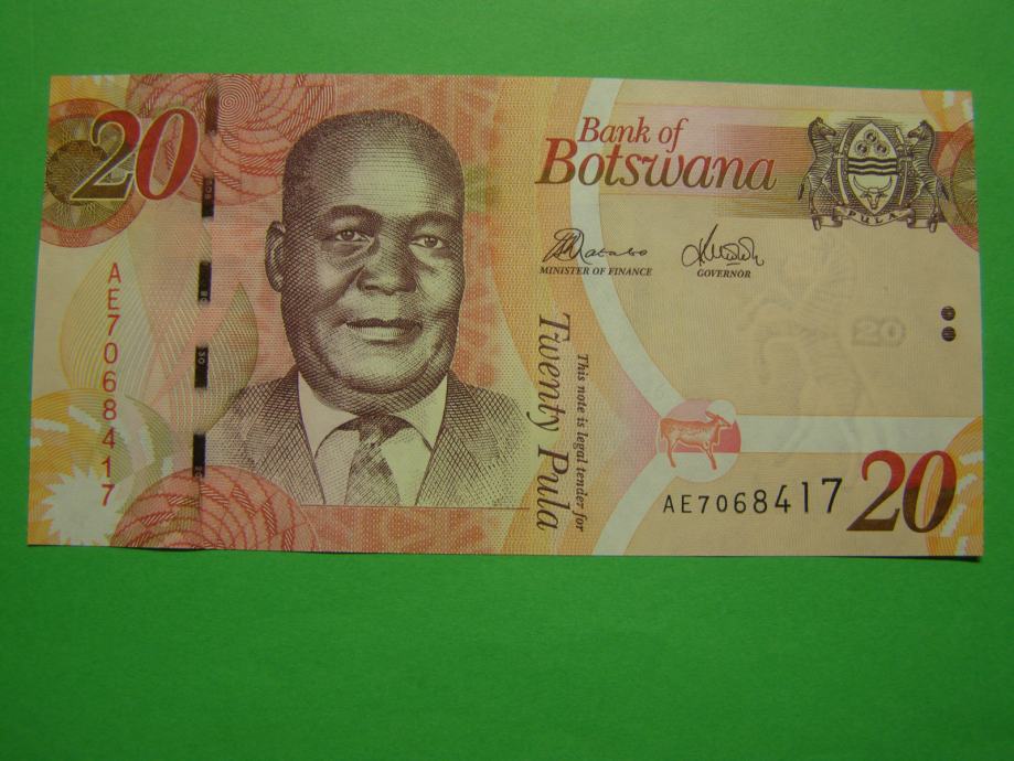 Prodam bankovec 20 Pula iz Botswane (20 BWP), kot ga lahko vidite na fotografijah. Bankovec je popolnoma nov - UNC kvalitete.